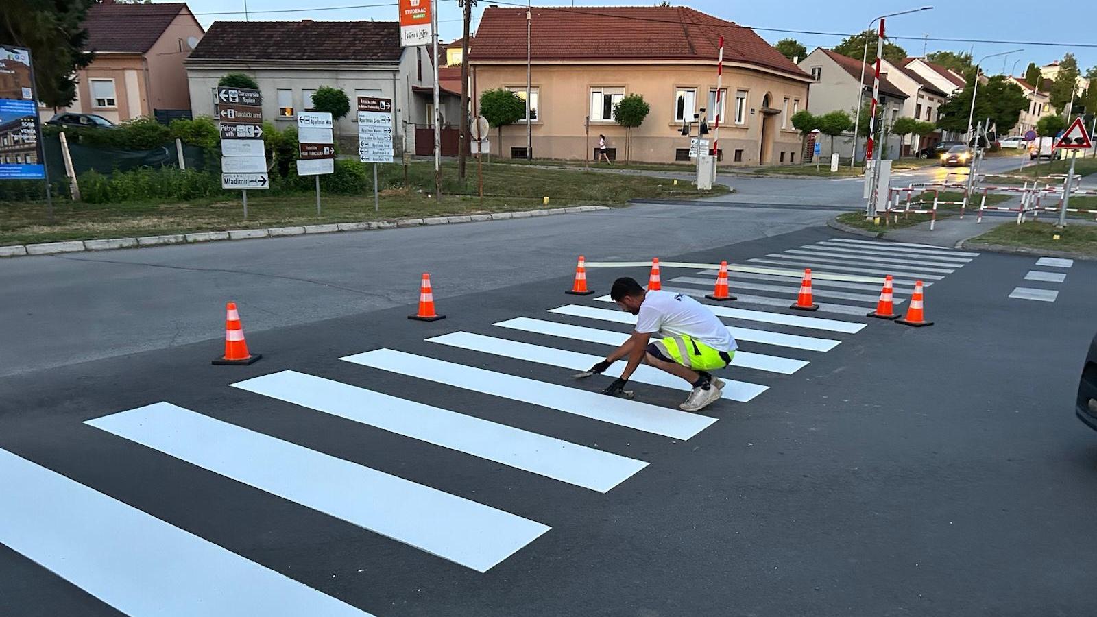 Obnova pješačkih prelaza 11 kol, 2025 | Novosti Obnovljene zebre i zaustavne linije značajno će doprinijeti većoj sigurnosti učesnika u saobraćaju.