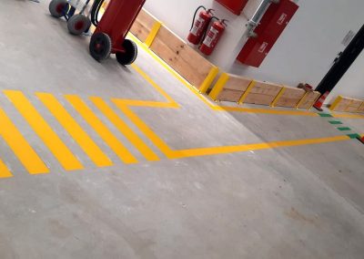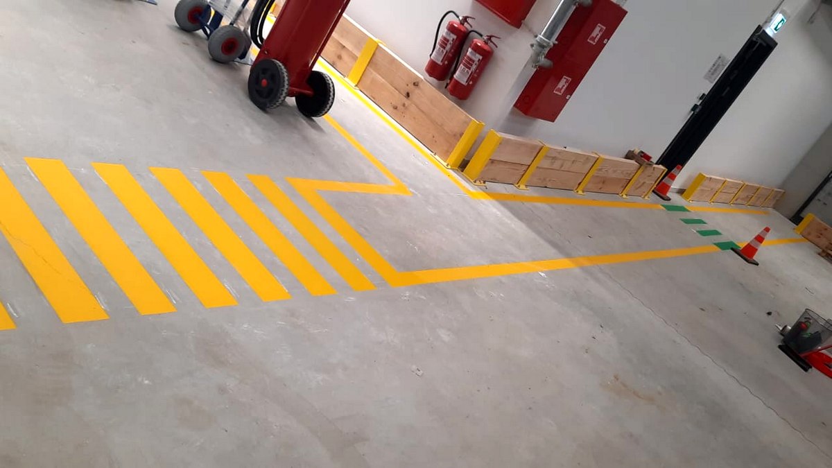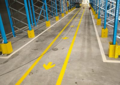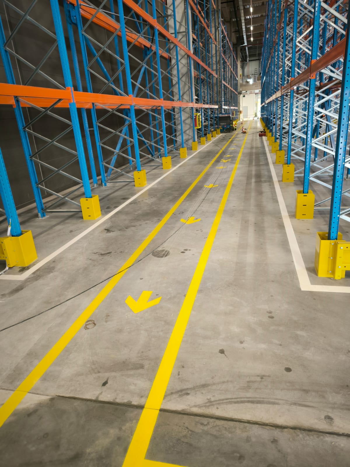 Iscrtavanje transportnih puteva u skladištu predstavlja proces označavanja površina unutar skladišnog prostora radi sigurnog, učinkovitog i organiziranog kretanja ljudi, vozila i opreme (npr. viličara, paletara).
