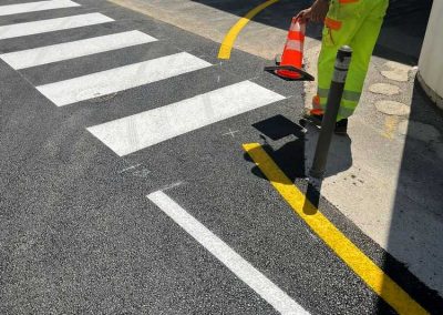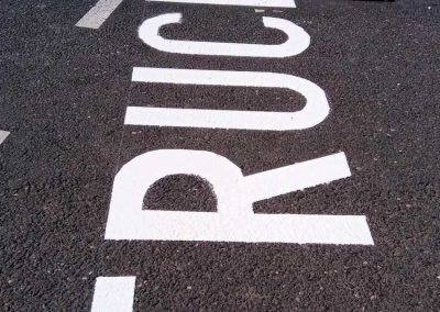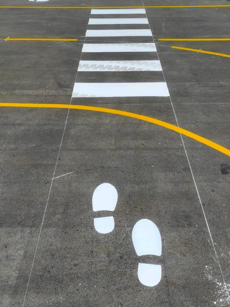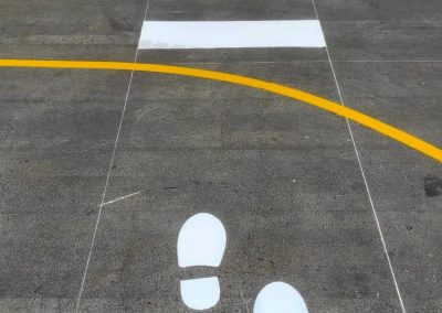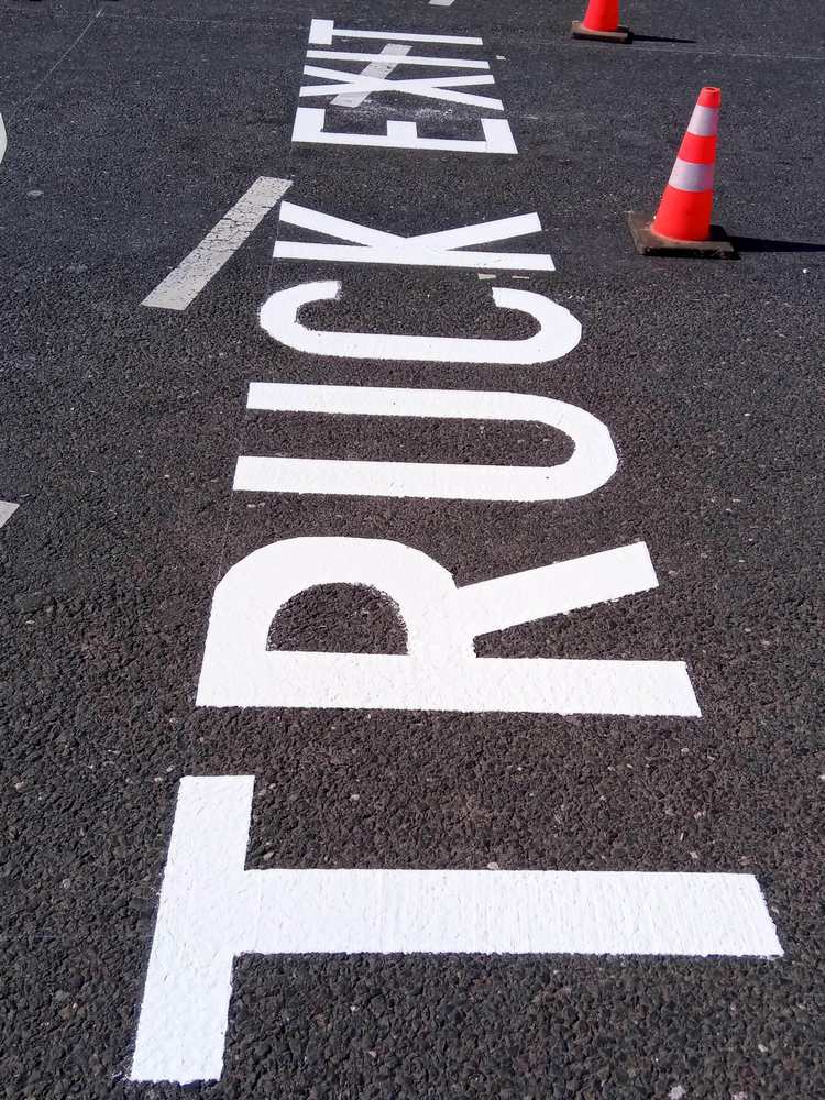 Označavanje se izvodi bojama otpornih na habanje ili epoksidnim smolama, a linije i simboli najčešće se strojno iscrtavaju pomoću uređaja za precizno nanošenje boje.
