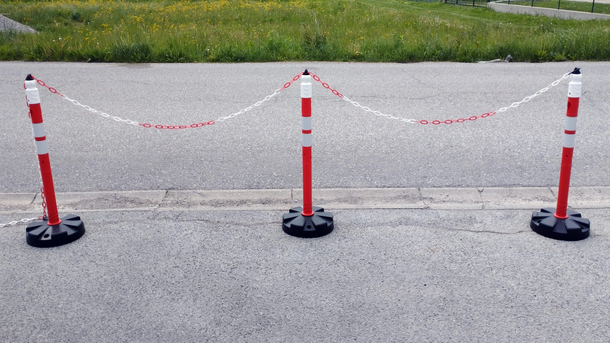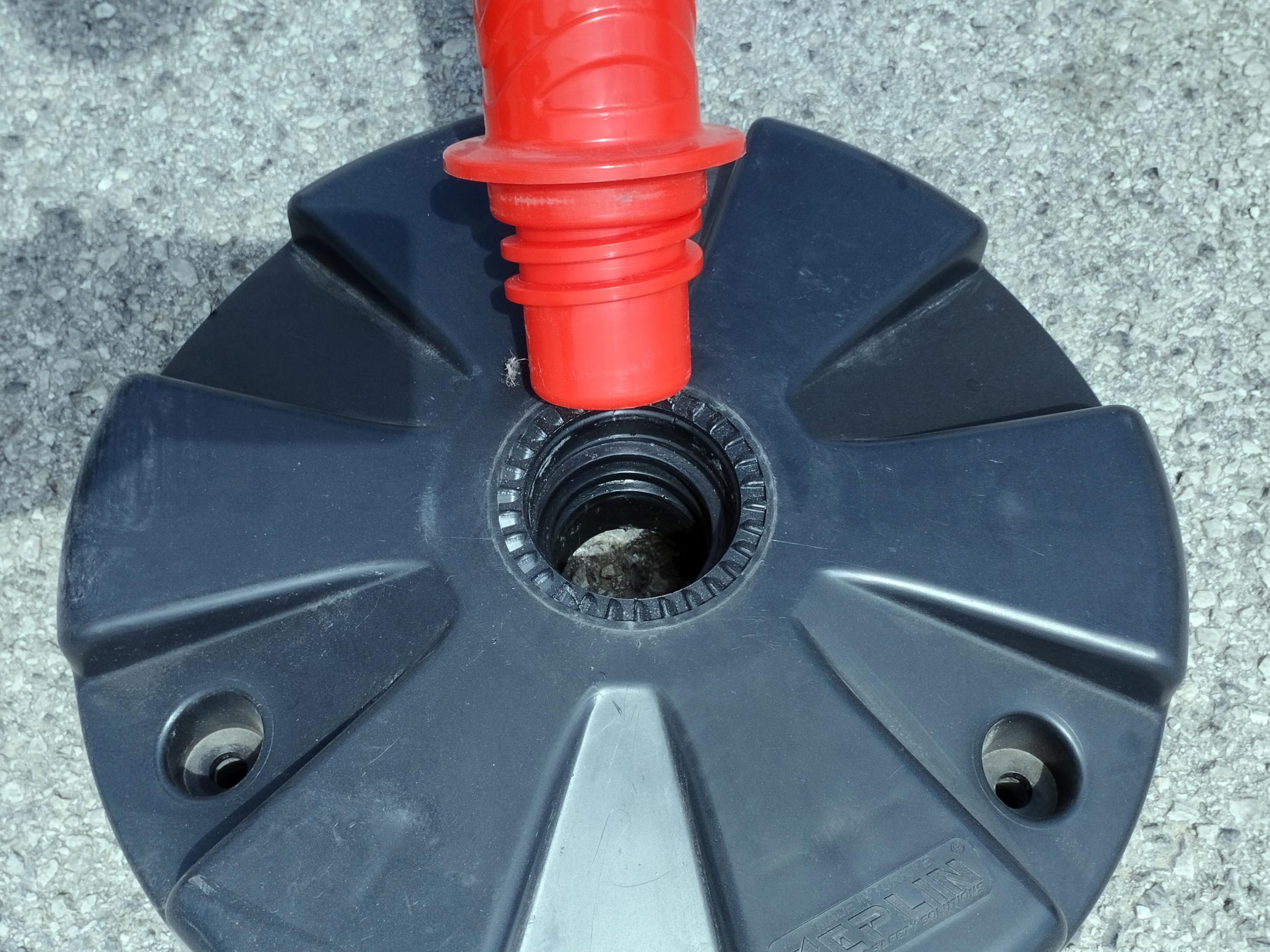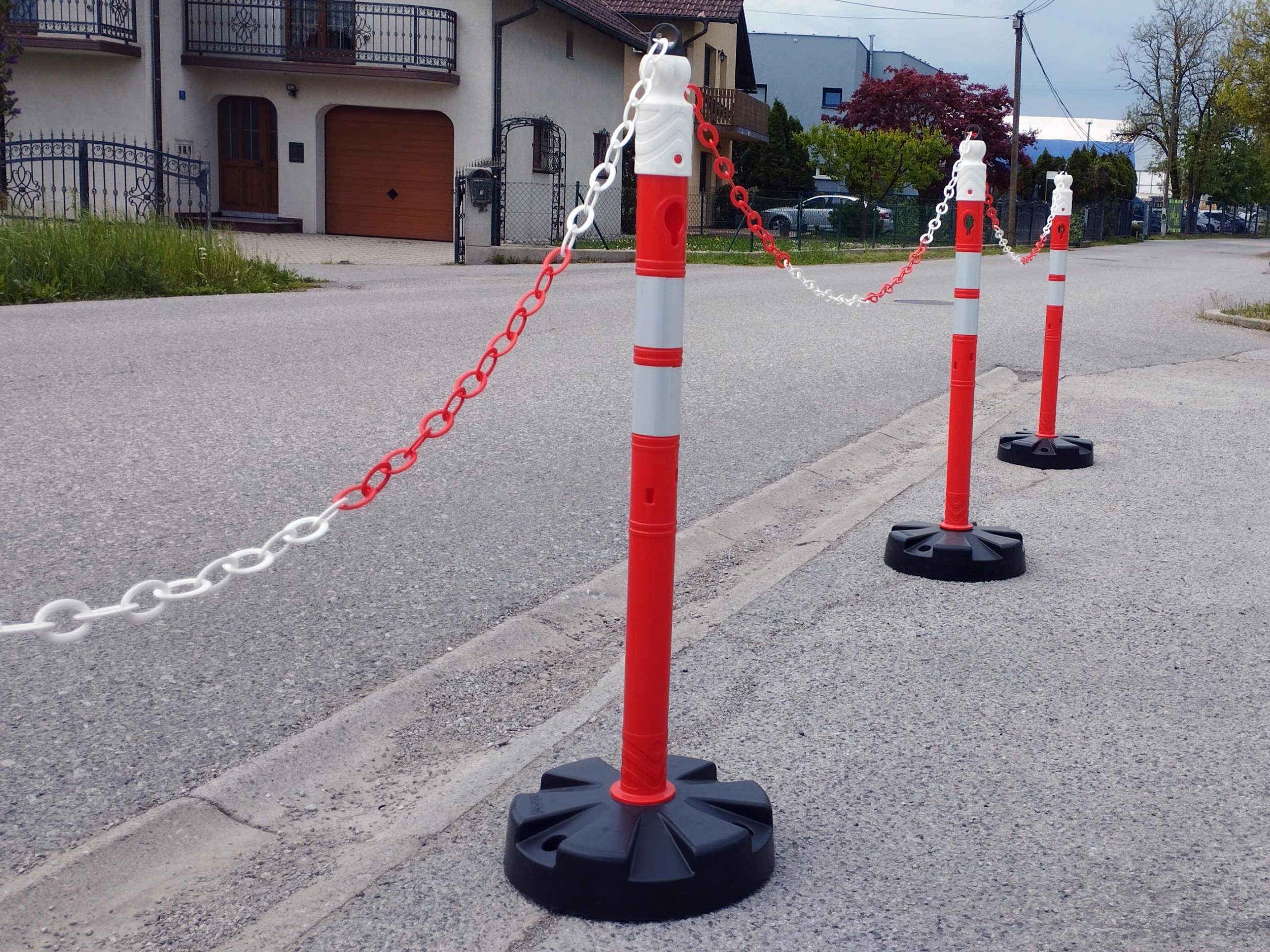 - Materijal i dizajn: Stupić je crveno-bijele boje s reflektirajućim prugama za bolju vidljivost, a stabilnost osigurava otežana baza težine 5 kg.